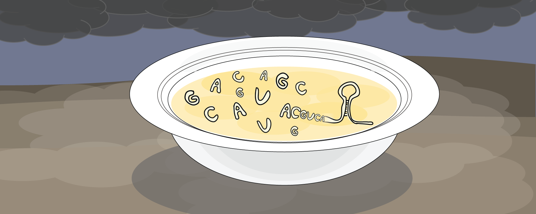Before life existed on earth, the earth was a chemical environment that scientists refer to as the primordial soup. The high-energy molecules in this environment had the ability to form complex molecules like RNA and proteins. In the 1950s, the famous Miller-Urey experiment showed that electric discharges in the primordial soup could prompt the spontaneous formation of biological molecules such as amino acids, carbohydrates, and nucleotides1. These building blocks were important precursors to establishing a system of life that would be able to duplicate itself. However, two critical pieces of the puzzle are missing: genetic inheritance (passing genetic material from parent to offspring) and enzyme catalysis (proteins that help with chemical reactions).